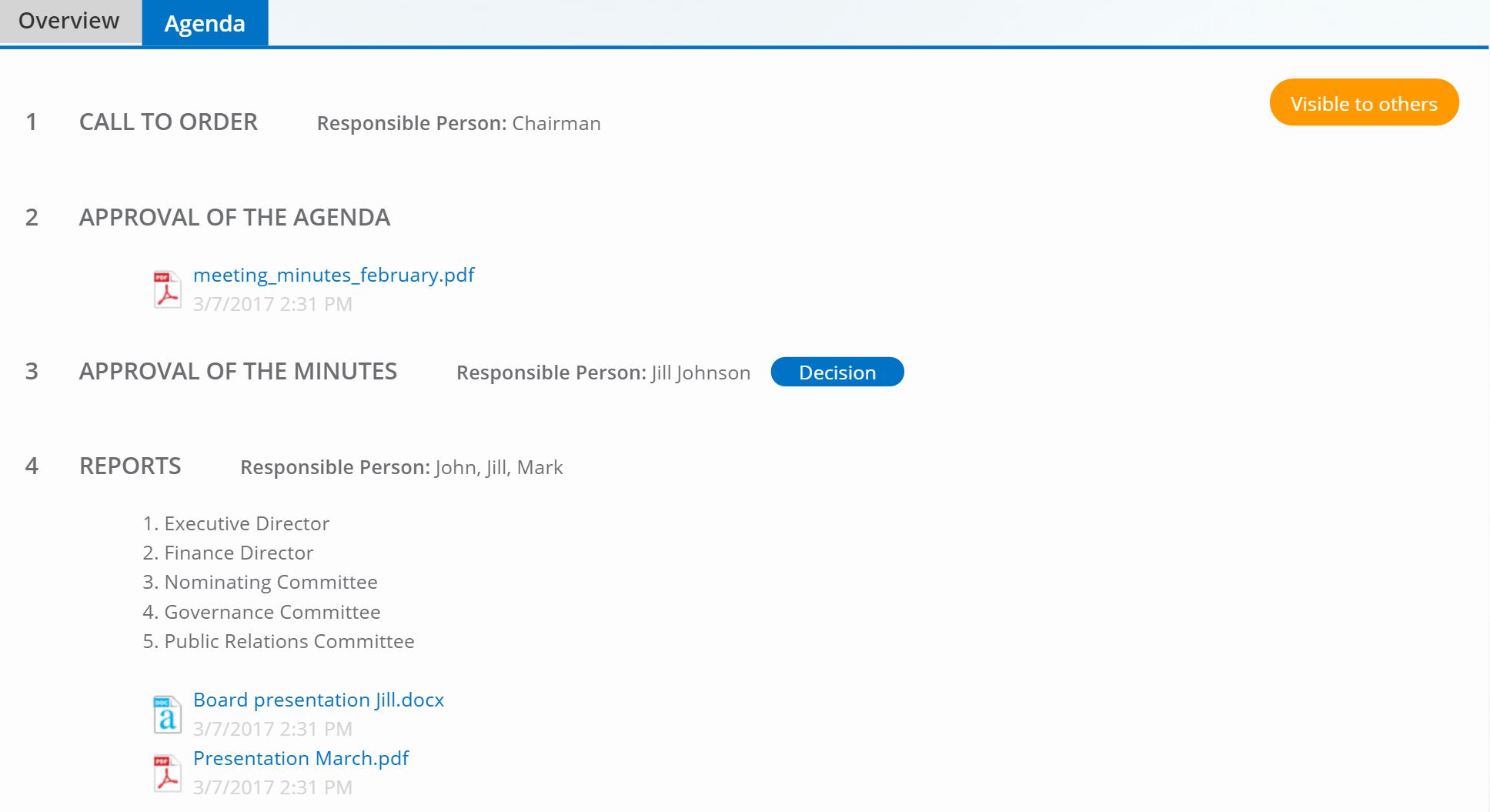 - Online board meeting minutes review